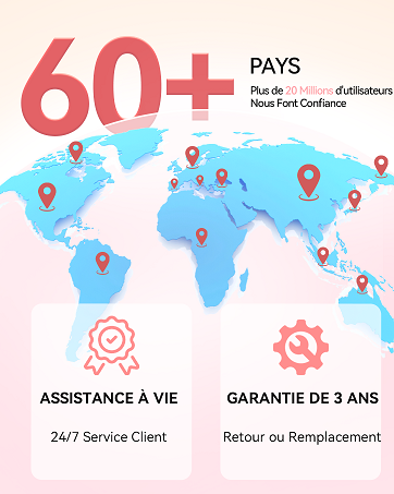 Support rotatif 360°, utilisable sur table ou fixé au mur.